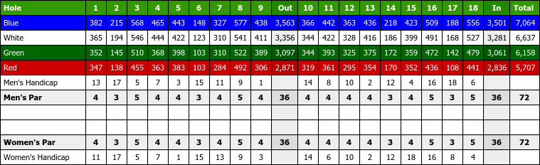 Blue M - 742143 White M - 724141 WhiteGreen M - 709136 Green M - 697129 GreenRed M - 684124 Red M - 663118 Blue L - 809149. The scorecard is based on the tee pin and target positions shown on the map. Members enjoy a refreshed clubhouse with.